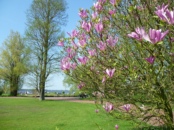 UmgebungDie einzigartige Landschaft des schönen Ammerlandes wird Sie begeistern. Nutzen Sie die Gelegenheit, die wunderschöne Natur und das gesunde Heilklima zu genießen. Besuchen Sie den herrlichen Kurpark, unmittelbar am Zwischenahner Meer gelegen, mit der imposanten Windmühle, den farbenprächtigen Rhododendren und Magnolien. Viele bunte Blumen und alter Baumbestand laden zum Verweilen ein. Zum Ausruhen, Schauen und Staunen stehen viele, schöne Sitzbänke zur Verfügung und ein Kurcafé bietet köstlichen Kaffee und Kuchen und kleine Speisen.  | Magnolie im Kurpark |